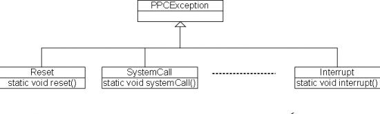 Each PPC exception is caused by a synchronous or asynchronous event and causes the processor to switch to supervisor mode and jump to the proper exception vector.