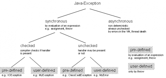 • Java Exception: Exception defined in the Java language specification. All Java exceptions are extensions of the class Throwable.